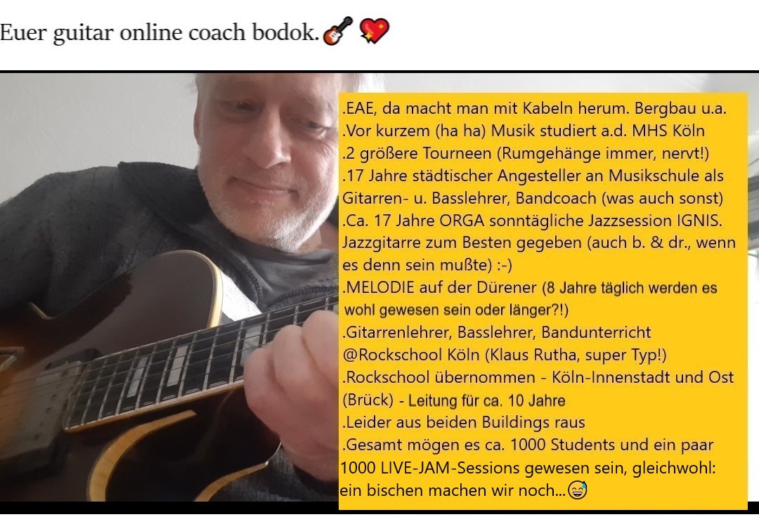 Anfänger bis Fortgeschrittene - A- oder E-Gitarre: 40 Min. (40,-€)